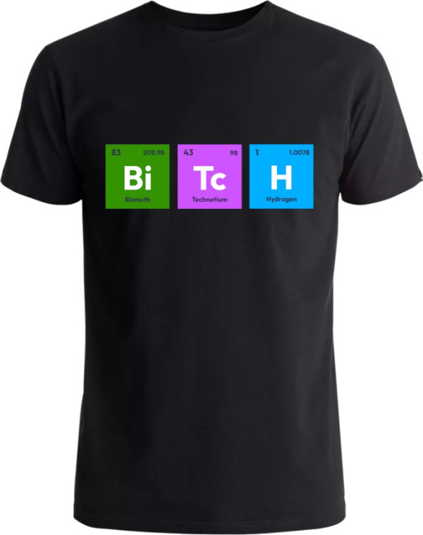 A camiseta Bitch é para quem não tem medo de mostrar sua atitude, estilo e personalidade! Com o uso ousado dos elementos da tabela periódica, ela transforma uma palavra de impacto em uma peça de roupa que fala por si mesma. Se você é daquelas pessoas que exalam confiança, esta camiseta vai ser a cara do seu look. Quem tem poder, não tem medo de se expressar!